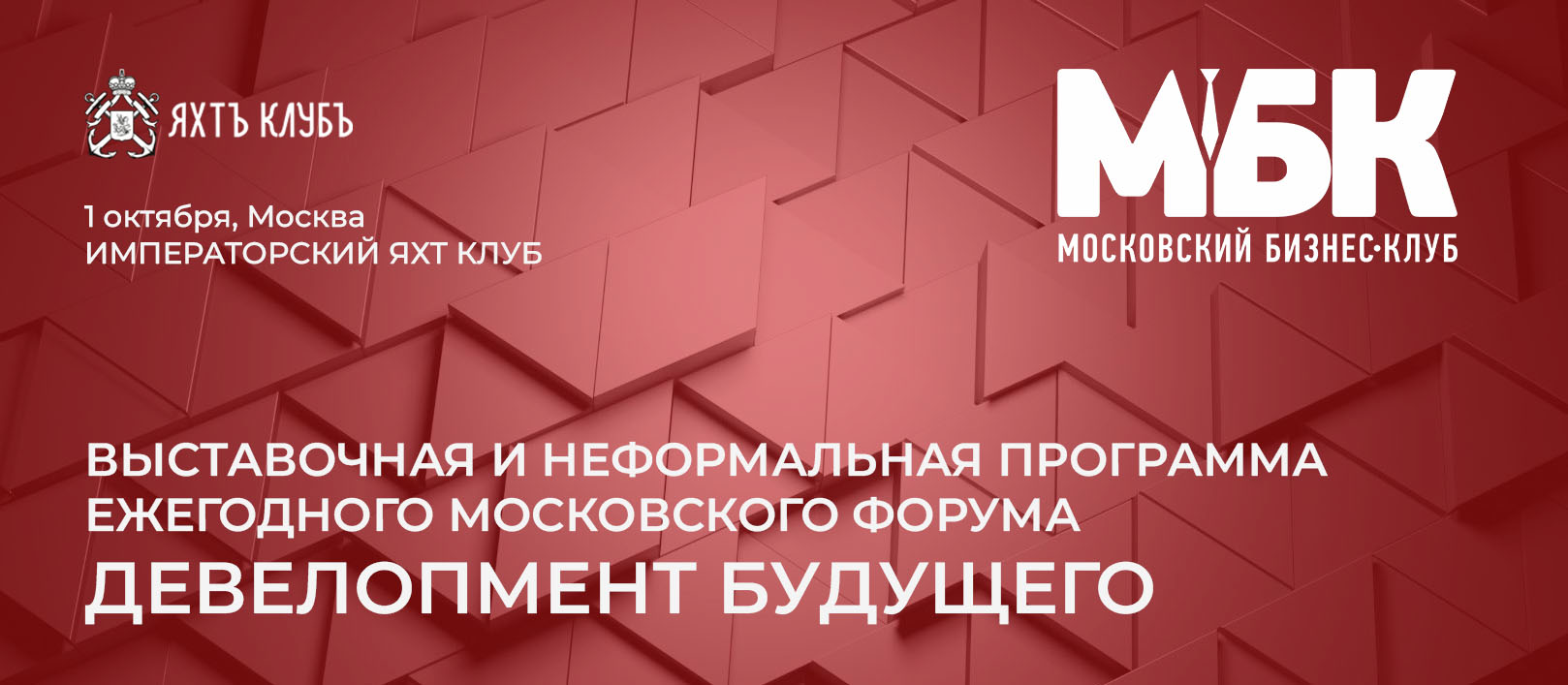 1 октября 2025 года Московский Бизнес Клуб приглашает вас принять участие в ежегодном московском форуме по недвижимости «ДЕВЕЛОПМЕНТ БУДУЩЕГО» на территории Красного Октября, в Императорском яхт-клубе, расположенном на отдельном острове Москвы-реки в самом центре столицы.