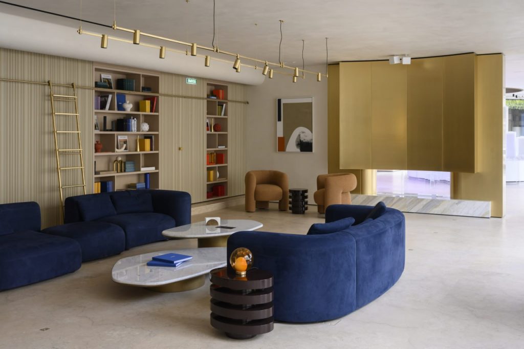 Двухуровневое пространство офиса учитывает разные сценарии взаимодействия с гостями. На первом этаже встречает парадный ресепшн с выразительной мраморной стойкой. Зона ожидания представляет собой уютную гостиную с библиотекой и корнером, где гостям будут предложены авторские коктейли. Для обсуждения частных вопросов на втором этаже предусмотрены переговорные комнаты. Функционал офиса также предусматривает back-office для работы команды LEGENDA.