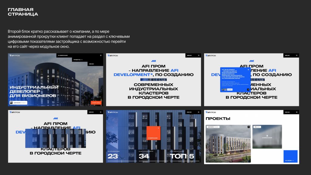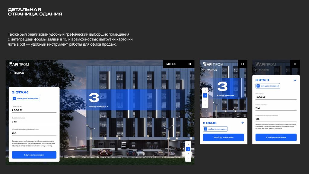 Для визуализации этой концепции мы создали не просто сайт, а цифровой инструмент с интерактивным выборщиком помещений, интеграцией с 1С и анимациями, раскрывающими философию развития. Бренд AFI PROM стал олицетворением подхода, когда девелопер мыслит на шаг вперед — например, проектируя рампы, позволяющие фурам подниматься на пятый этаж, что кардинально меняет логистические процессы арендаторов. Именно такие решения, а не только квадратные метры, формируют сегодня реальную стоимость девелоперского проекта в глазах целевой аудитории.
