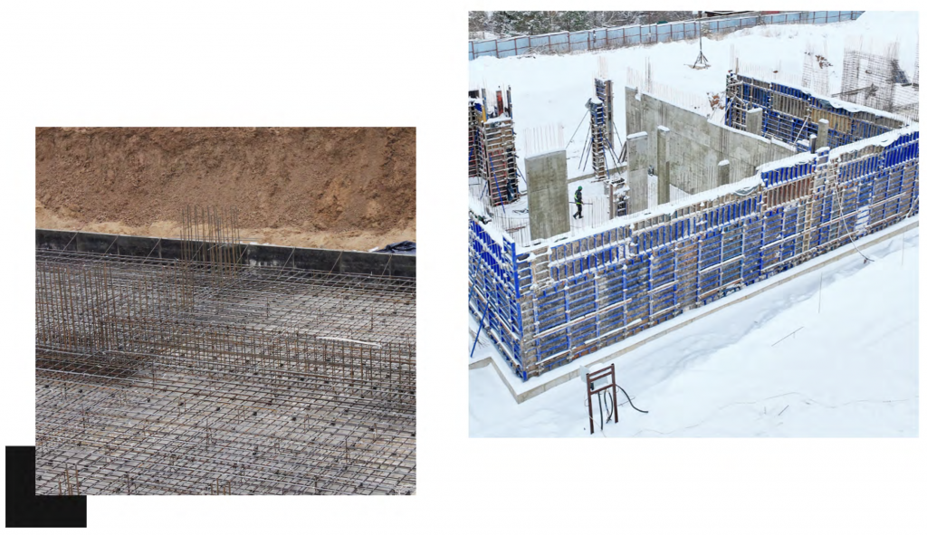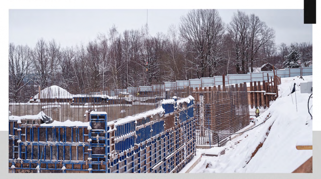 При этом монолитный каркас остается предсказуемым в поведении: он не дает усадки, не меняет геометрию, выдерживает снеговые и ветровые нагрузки и сохраняет стабильность конструкции даже в условиях активных климатических факторов загородной среды. Именно благодаря этому дома Papushevo Park сохраняют форму, эстетику и энергоэффективность десятилетиями.