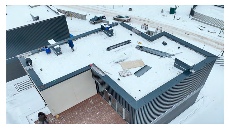 Основа такой кровли – современный многослойный «пирог»: экструдированный пенополистирол обеспечивает теплоизоляцию, разуклонка из керамзита создает правильный уклон для стока воды, армированная защитная стяжка придает жесткость, а верхний гидроизоляционный слой – полимерно-битумная или ПВХ-мембрана – отвечает за долговечность и полную герметичность конструкции. Такое сочетание материалов формирует устойчивую, надежную и долговечную кровлю, которая не требует частого обслуживания и сохраняет свои свойства десятилетиями.